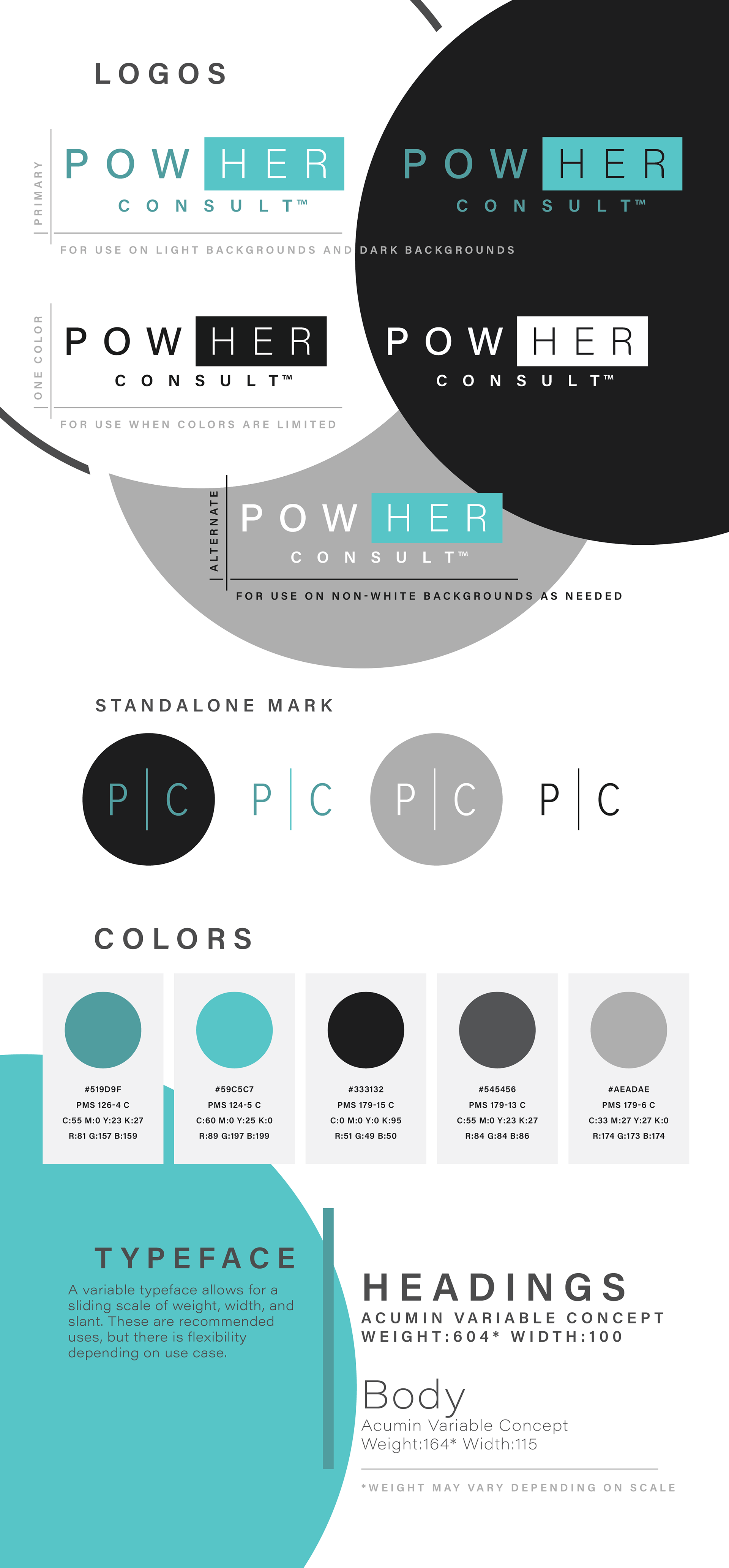 The final system includes a flexible logo suite, a bold yet refined color palette, and a versatile type system that allows the brand to adapt across print and digital platforms. Each element was crafted to convey professionalism, empowerment, and trust without sacrificing clarity or visual impact.